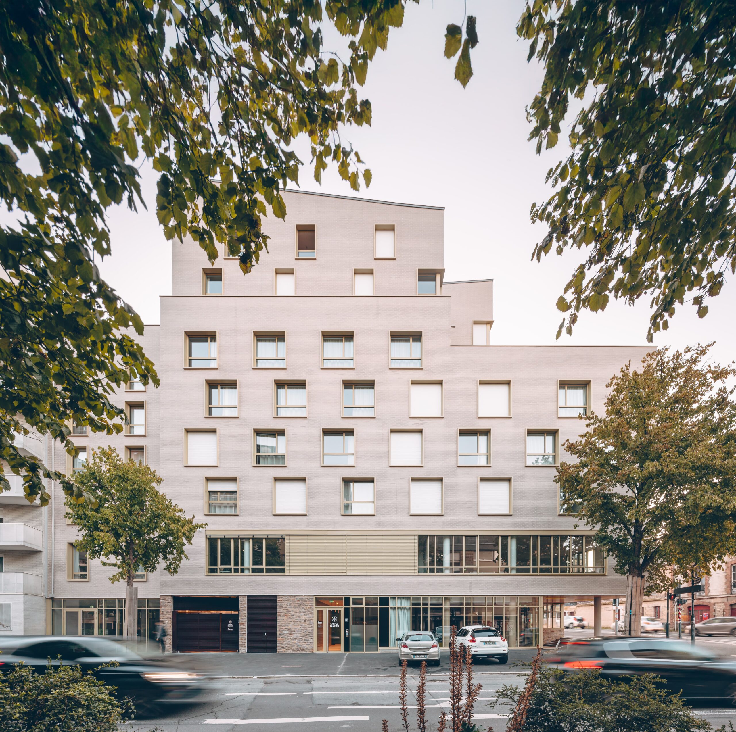 Le Campus Frassati est un complexe de plus de 3000 m² au cœur de Rennes réunissant une résidence étudiante, des espaces de travail , une chapelle et des lieux de convivialité