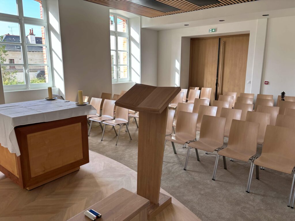 Son aménagement favorise le recueillement personnel mais aussi la prière communautaire.