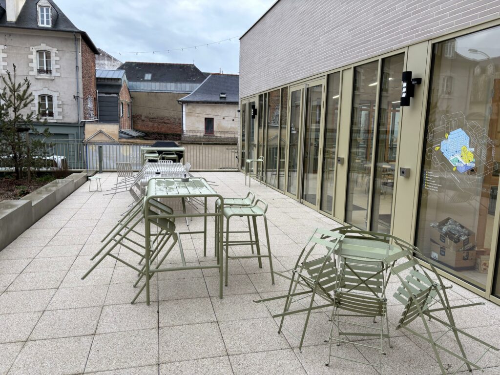 Le Campus Frassati dispose d’une terrasse totalement équipée pour prendre ses repas sous le soleil breton , se reposer dans un transat après un exam…